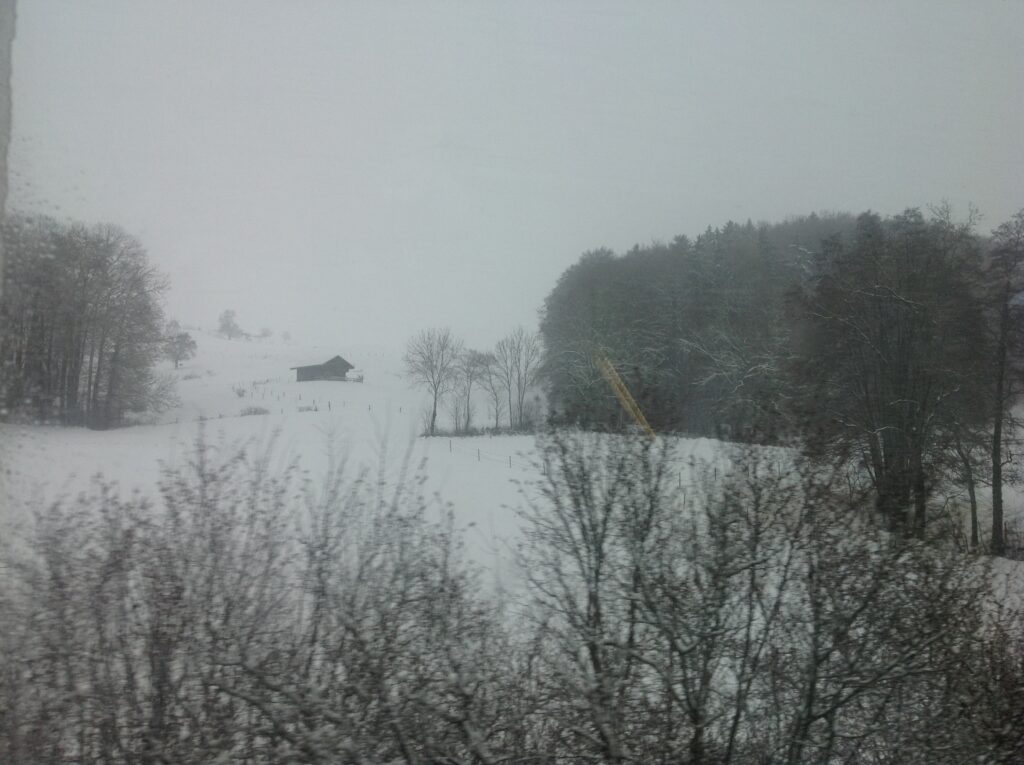 Мой путь начался из Франкфурта, куда я прилетела прямым рейсом из Баку. Помню, как прилетела морозной ночью, шла метель и я, зачекинившись в Германии отправилась сразу в кафе на перроне ж/д вокзала. Путь предстоял в Швейцарию, город джаза Монтрё.