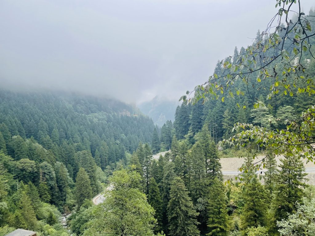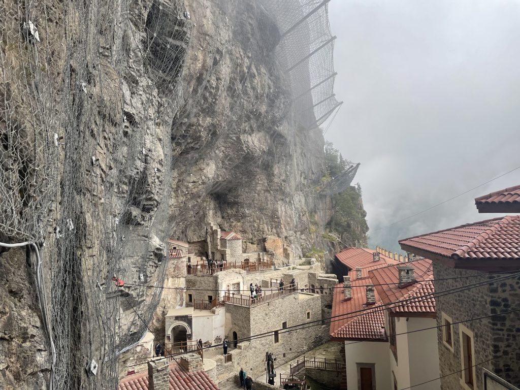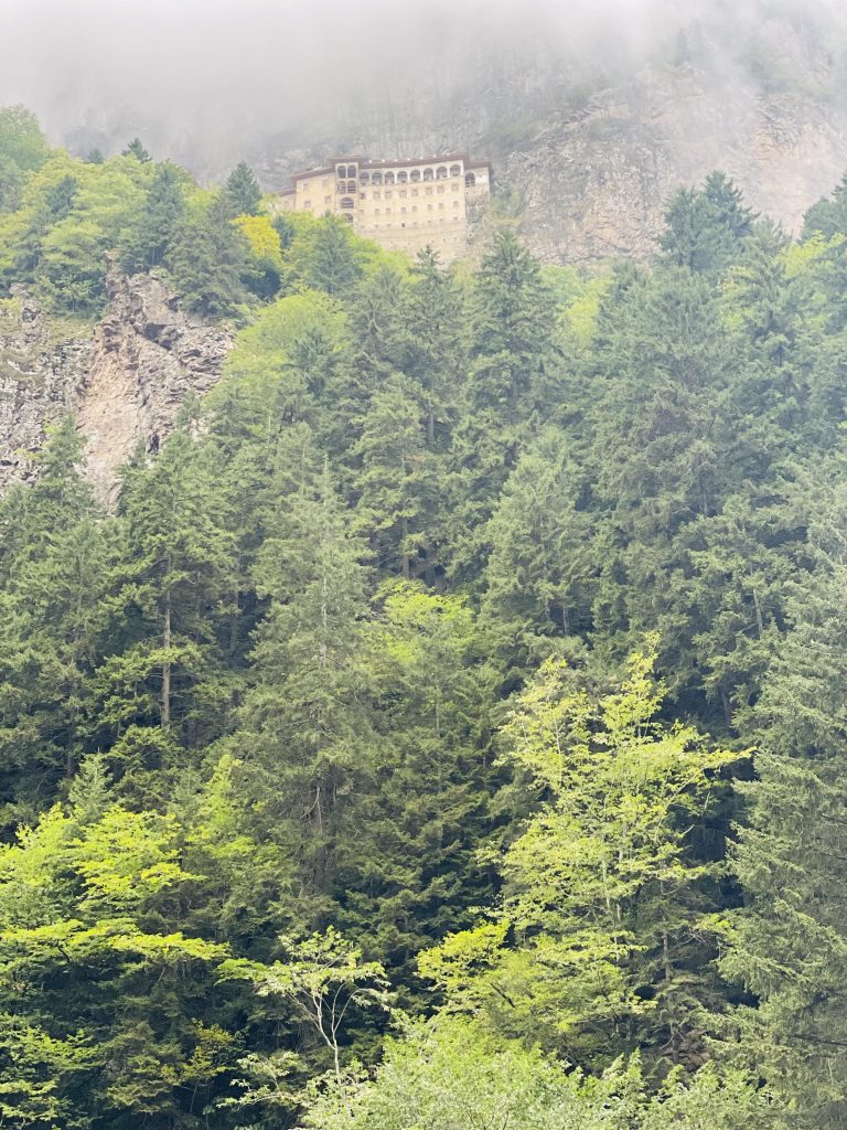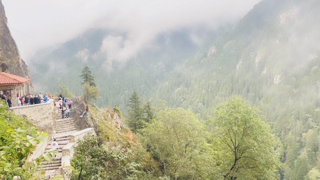 Весь путь проходит в зелени лесов Карадениз, а сам монастырь виден ещё издалека, находясь в гуще тумана.